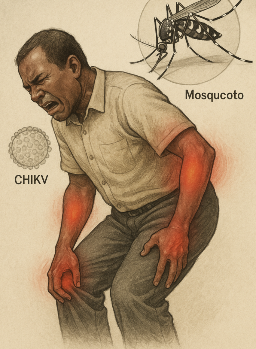 “基孔肯雅”源自非洲土著语,意思是“疼到弯腰走路”——没错!这病最狠的就是让人关节剧痛,像被“拆骨重组”。它由基孔肯雅病毒(CHIKV)引起,靠白纹伊蚊、埃及伊蚊(花斑蚊)传播,已在全球110多个国家“打卡”。