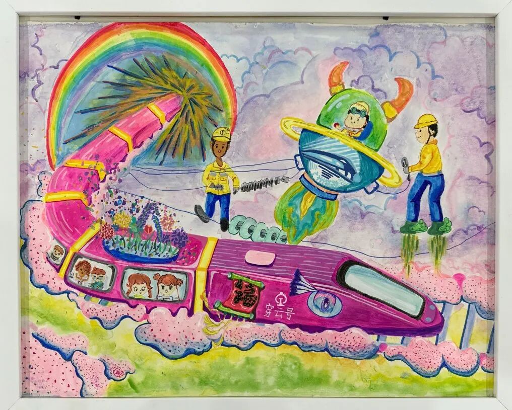 回到家,我迫不及待地把今天的冒险画在了新买的素描本上。会跳舞的油菜花、打喷嚏的大山、对我眨眼睛的老车站……晚上,我做了一个甜甜的梦,梦见我的小床变成了一列彩色火车,“咔嚓咔嚓”地带着我继续在祖国的故事书里旅行。