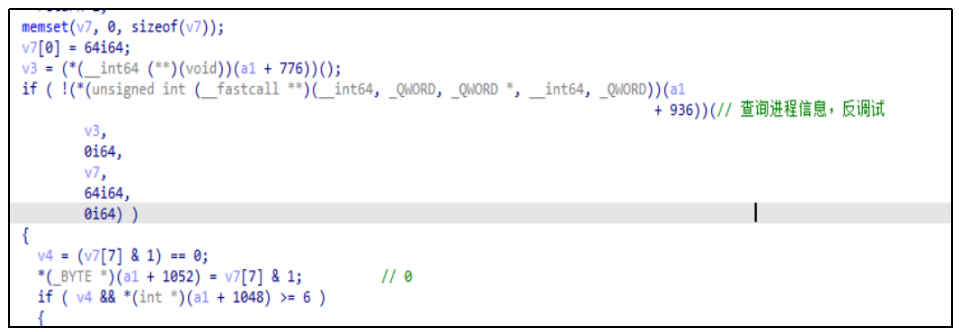 “Back_Eleven”由“eHome_0cx”加载运行,具有严格运行环境检测机制,若发现运行环境系统版本异常、调试程序正在运行等情况,将启动自删除功能。并且该武器在设计时加入了反调试功能,以防止被逆向分析。
