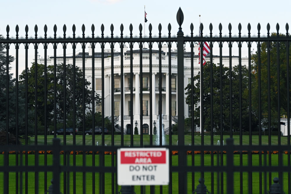 这是10月21日在美国华盛顿拍摄的白宫。10月21日,美国联邦政府“停摆”已经整整三周。新华社记者李睿摄