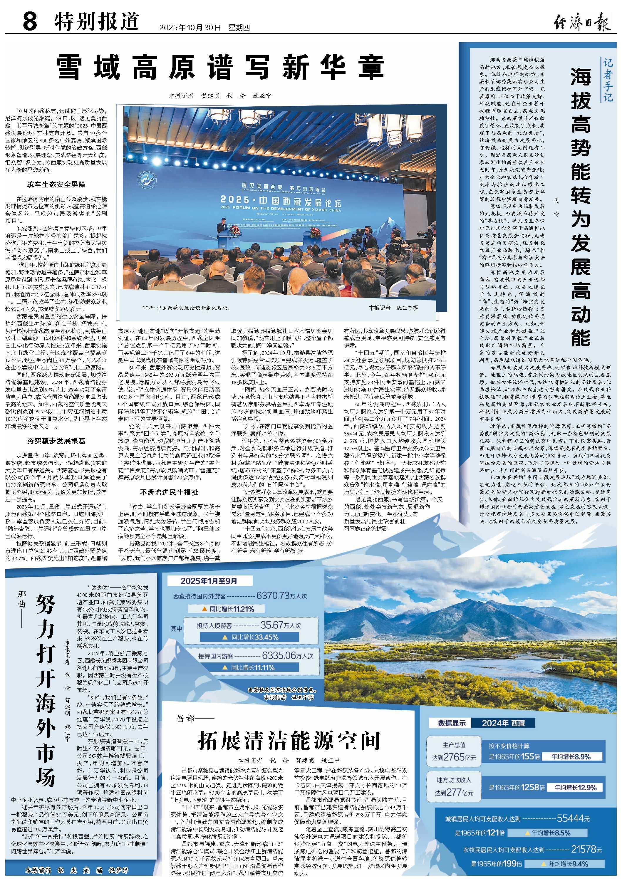 遇见美丽西藏,书写雪域新篇。今天的西藏,处处焕发新气象、展现新作为、见证新变化。生态优先、高质量发展与民生改善的壮丽画卷正徐徐铺展。