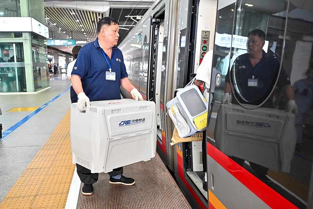 在完成资料填写后,牛先生在宠物交接区将自己的爱犬放入到工作人员准备的专用托运箱,开启了与主人的“同车之旅”。大约两个半小时后,列车抵达北京西站,在完成“宠物信息”及宠物状态核对、身份验证等标准流程后,牛先生从专用托运箱中接回了宠物。至此,高铁宠物托运服务从线上预约、线下托运到终点交付的全流程闭环成功跑通。