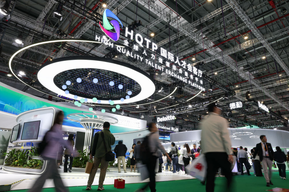 ↑11月8日在服务贸易展区拍摄的HQTP国际人才会客厅展台。