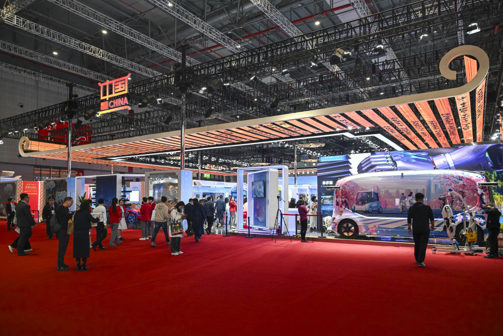 ↑11月5日,观众在第八届进博会国家展中国馆参观。