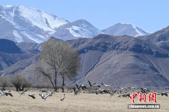 11月26日,位于西藏自治区拉萨市林周县的黑颈鹤自然保护区内,大量越冬的黑颈鹤在卡孜水库、农田、湿地里觅食、嬉戏。林周县位于拉萨河上游及澎波河流域,是黑颈鹤的主要越冬地之一。