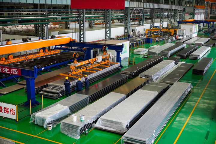 走进南山铝业高端轻量化铝板带项目现场,入目一派繁忙景象。生产车间里,板带堆放整齐,即将供应给空客、波音等公司。南山铝业板带事业部总工程师张华说:“项目2023年开工,目前已部分批量生产。”