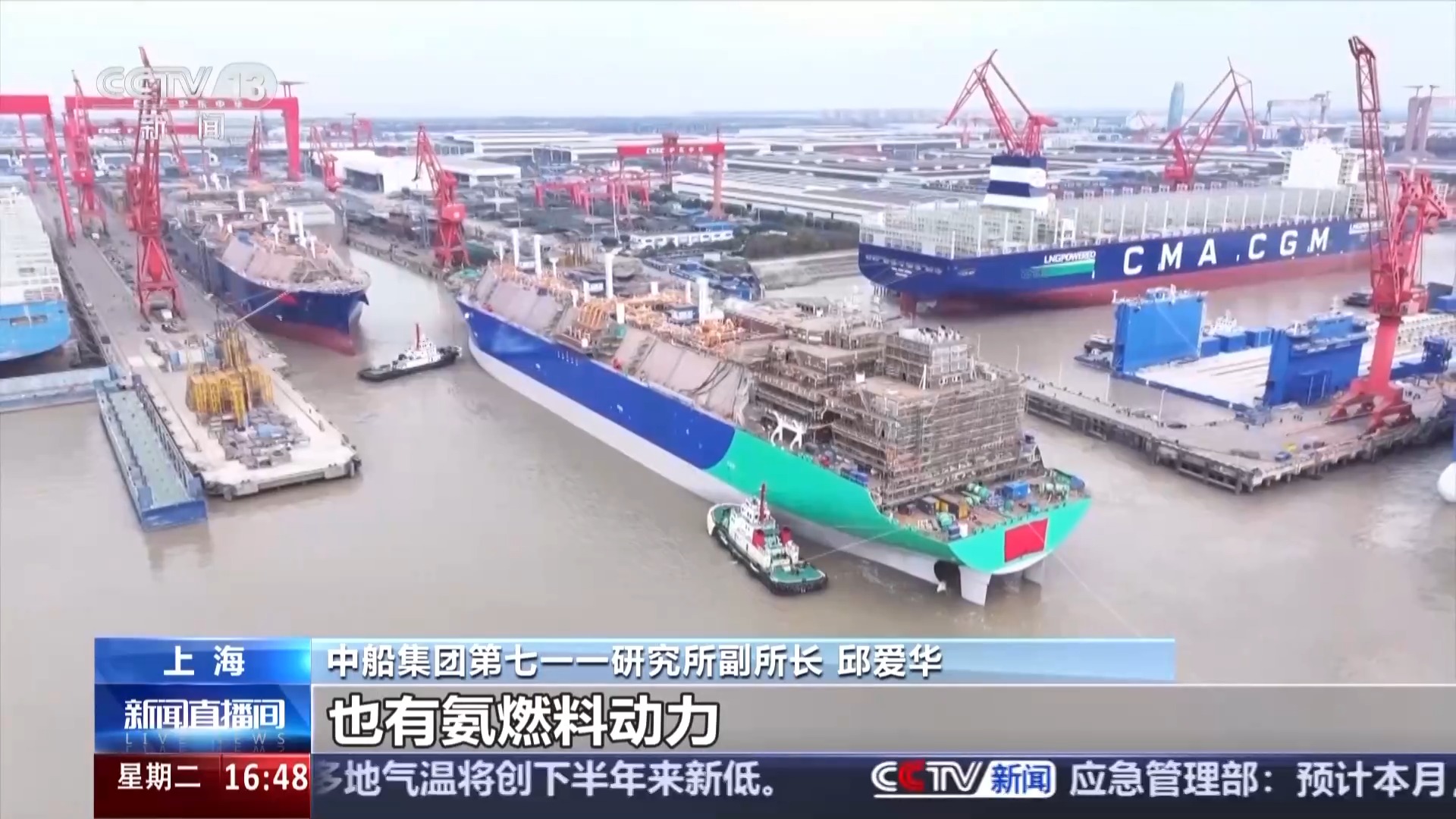 中船集团第七一一研究所副所长 邱爱华:这几年从整体新船的订单来讲,新能源的动力占比也是越来越高,动力的形式也是多样化的。有LNG动力,也有甲醇动力,也有氨燃料动力,同时也有带着储能电池的混合动力,这也是未来船舶动力形势发展方向。