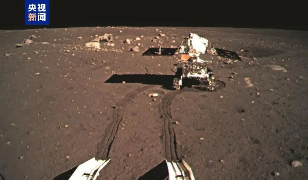 中国月球车“玉兔号”在月表留下的第一行足迹