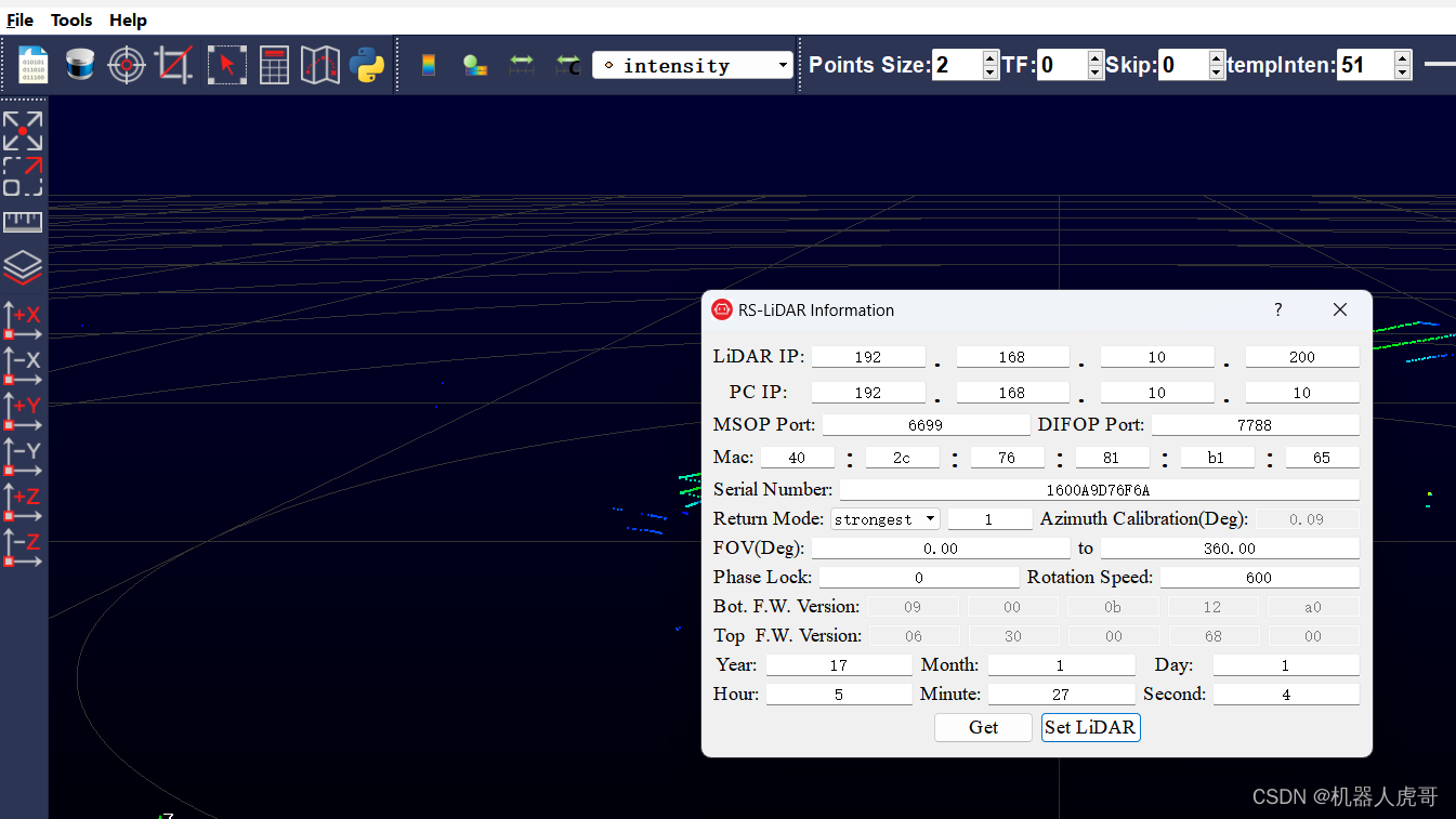 大家好,我是虎哥,之前使用了很多单线激光雷达,这几年,3D激光雷达国产化后,逐步已经降价很多,3D激光雷达对于大环境导航,无人驾驶辅助导航,都有很多优势。经过逐步的删选,目前对于低速机器人小车类性价比,稳定性上来说,速腾的 RS-LiDAR-16 都算是标杆产品了,有感于网上对于上手就可以简单玩起来的说明比较少,所以总结一下自己的简单测试经验,分享给大家。当然,这款雷达已经停产,市面上还能找到一些,官方是推荐使用太阳神系列做全线替代。