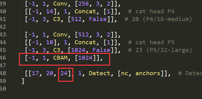 这里在检测头前面加入了CBAM模块,同时最终的层索引号也要加1处理变成了24。