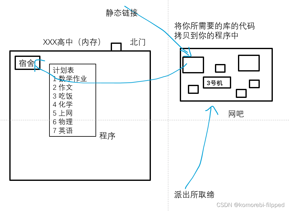 我怎么知道有外部的方法(去网吧)?学长说的,并且我记住了,这就是链接的过程,学长相当于编译器中的链接器;