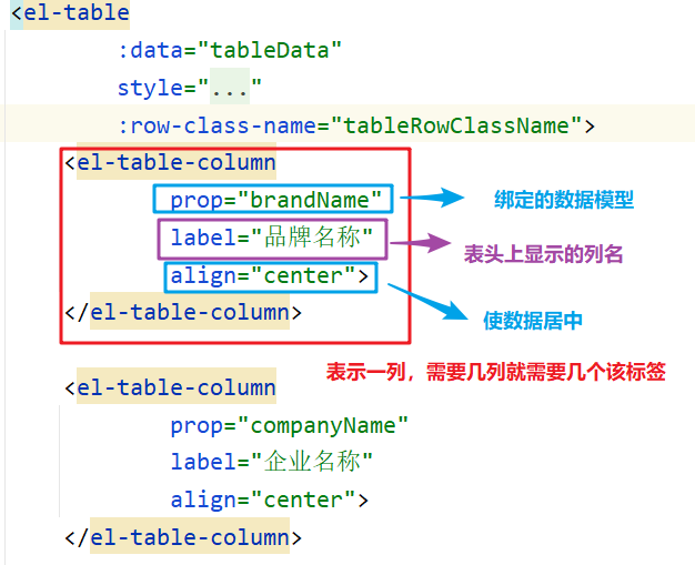 下面是对表格代码进行分析的图解。根据下图说明修改自己的列数和列名