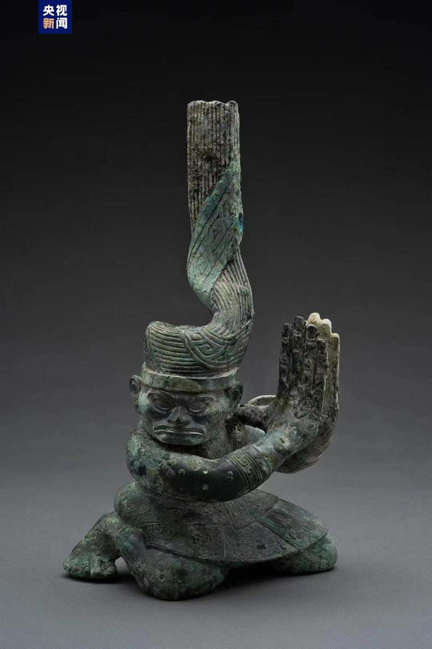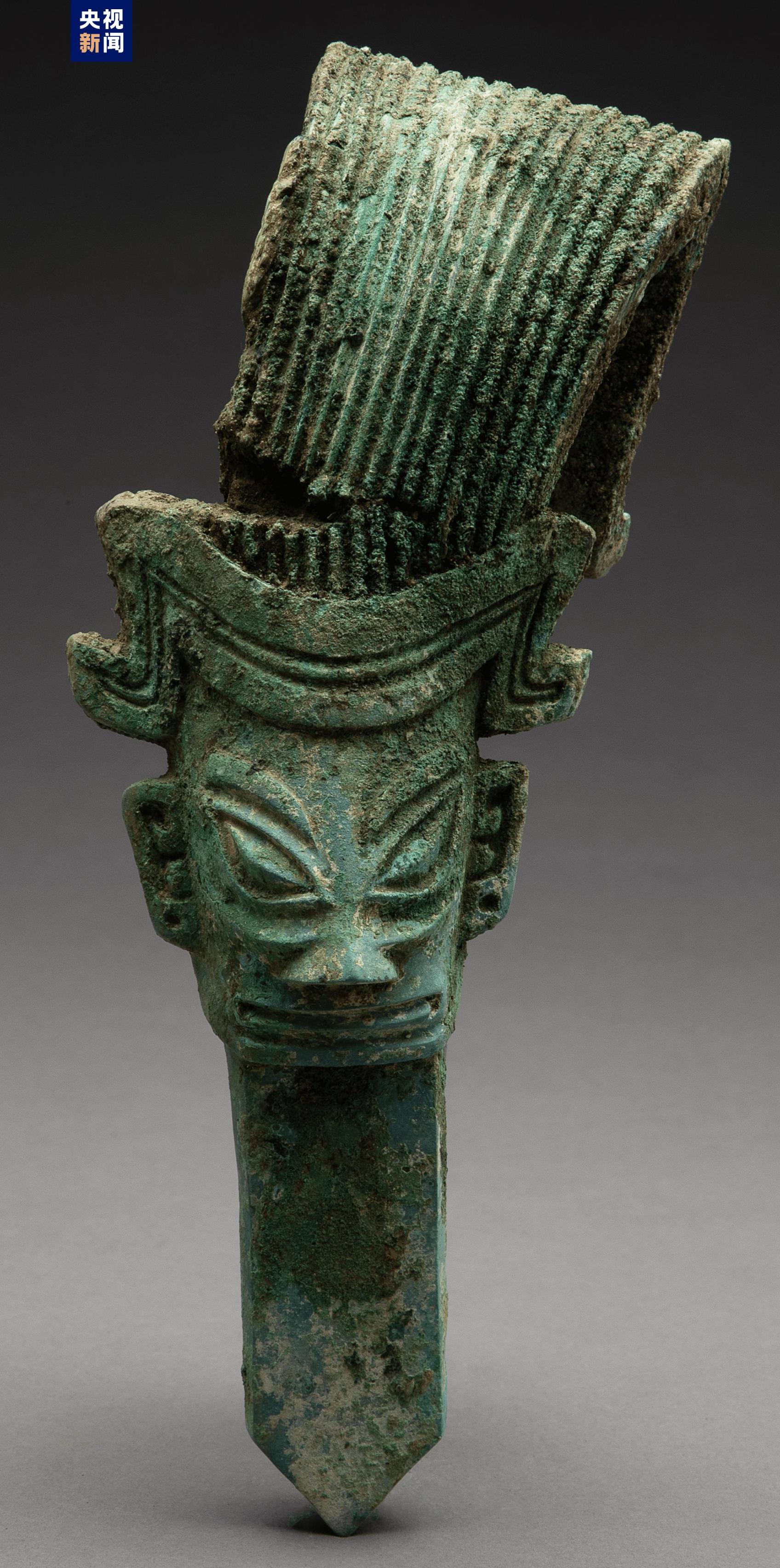 1.站在青铜人头像面前,让摄像师站在你的正对面